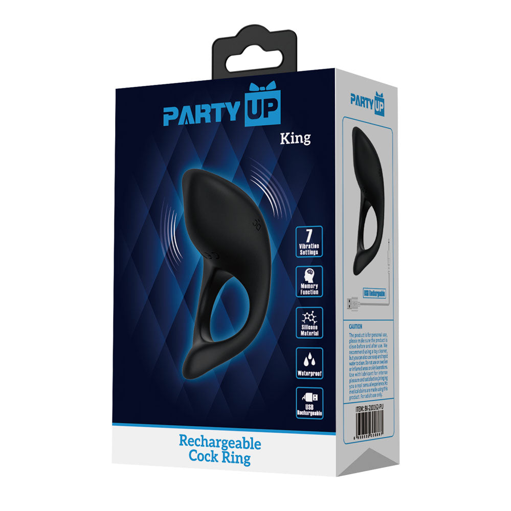 Rechargeable Party Up KING Cock Ring - Black (Body-Safe Silicone, USB Rechargeable)