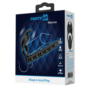 Party Up MARCUS Vibrating Cock Ring & Anal Plug - Black USB Rechargeable Double Penetrator for Enhanced Pleasure