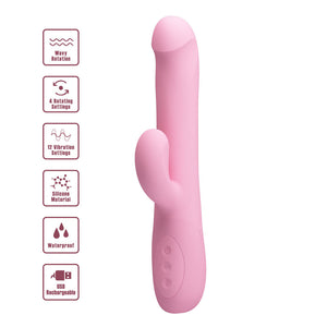 Party Up DEAN Wavy Rotation Vibe - Pink (USB Rechargeable, 23.8 cm Rotating Rabbit Vibrator for Enhanced Pleasure)