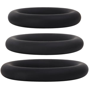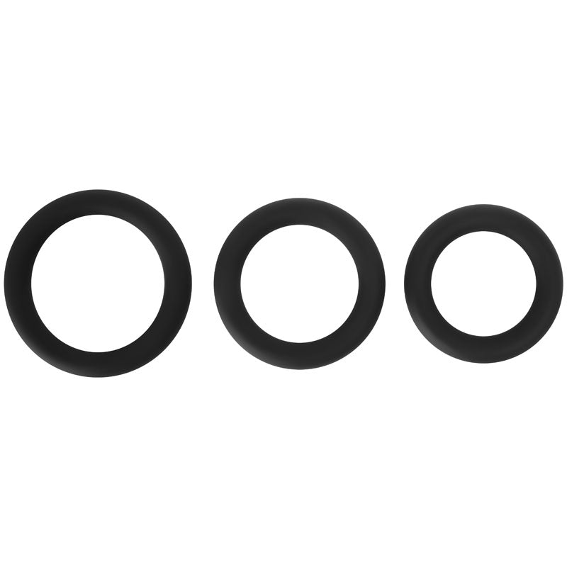 Adam & Eve Body-Safe Silicone Penis Ring Set - Black Cock Rings for Enhanced Performance - 3 Sizes Included